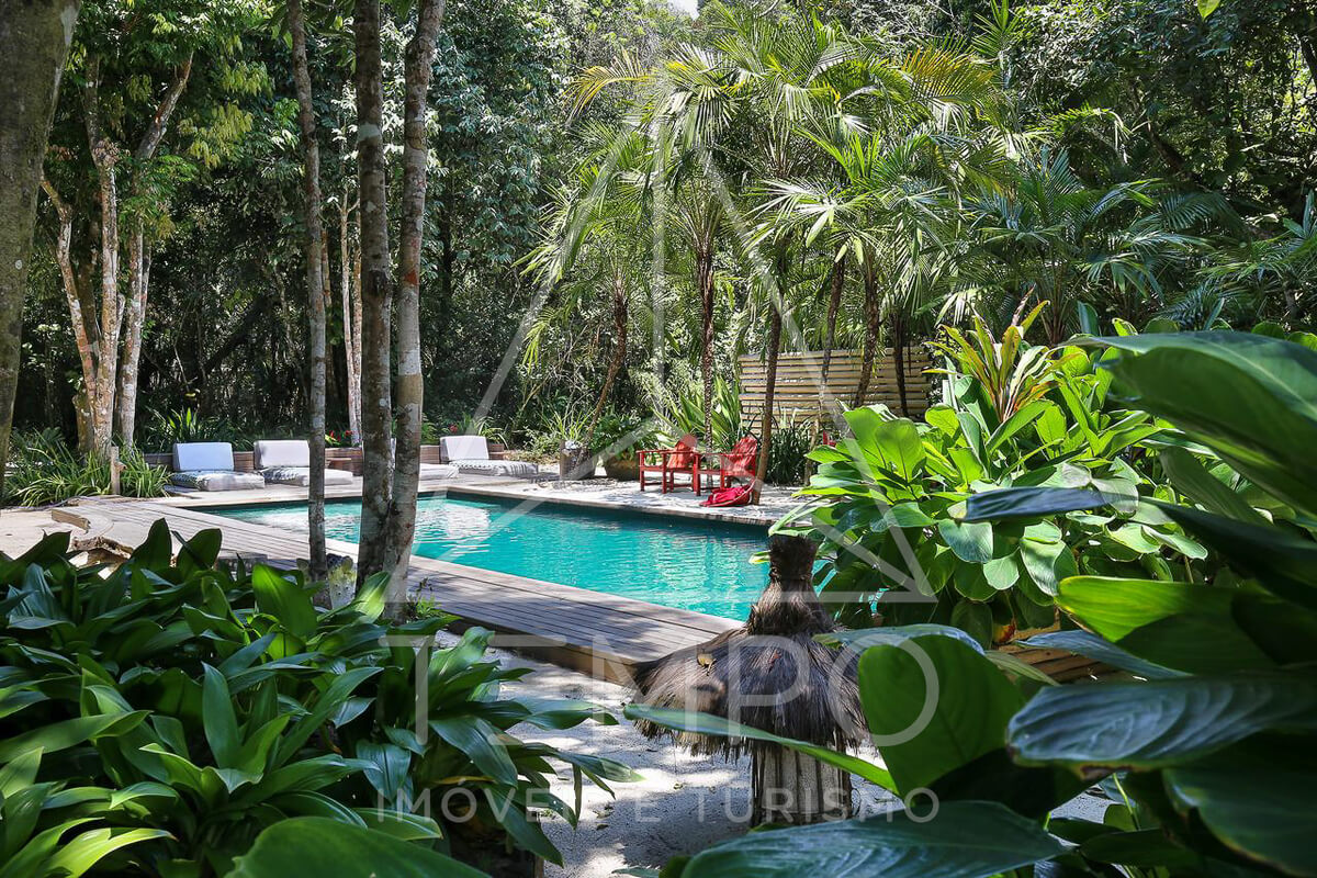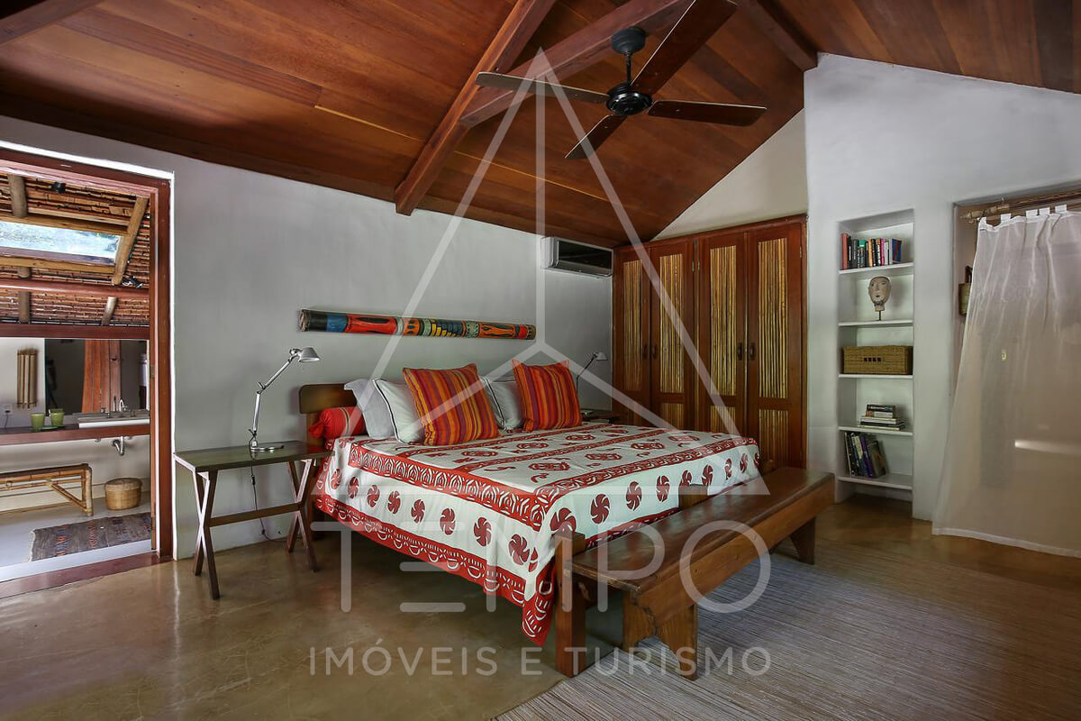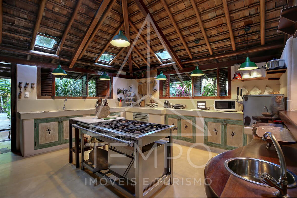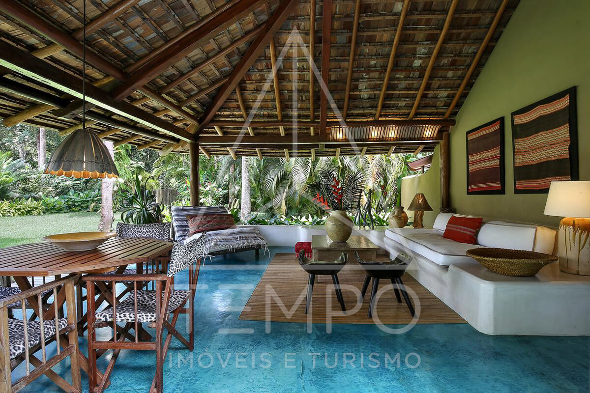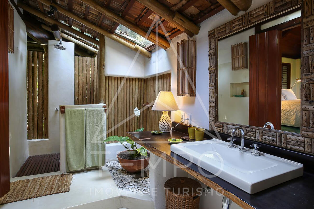 Com um design arquitetônico que valoriza a conexão com a natureza e a cultura local, a casa possui uma ampla área de lazer construída sob uma oca, promovendo interação com as tradições da região. Os espaços são amplos, com uma decoração rústica à baiana, divididos em quatro unidades que garantem tranquilidade e oportunidades de convívio familiar. Além disso, os hóspedes podem usufruir de um espaço destinado a atividades e massagens.