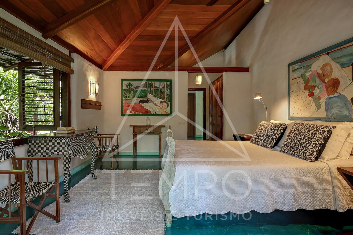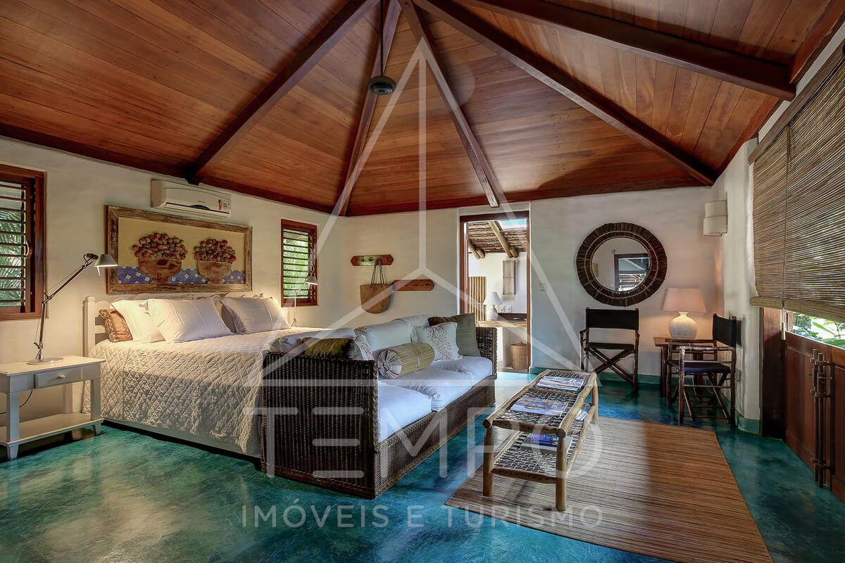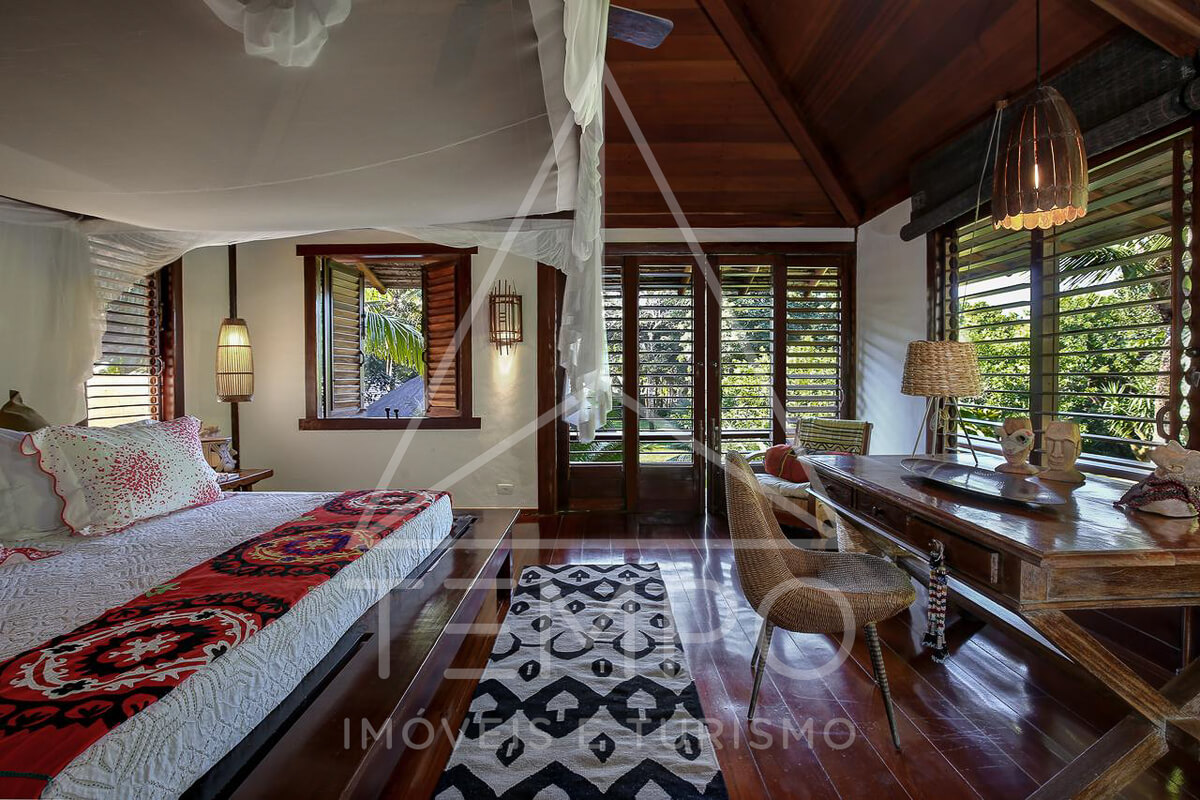 Suíte Master: Cama king size, mosquiteiro, closet, varanda.